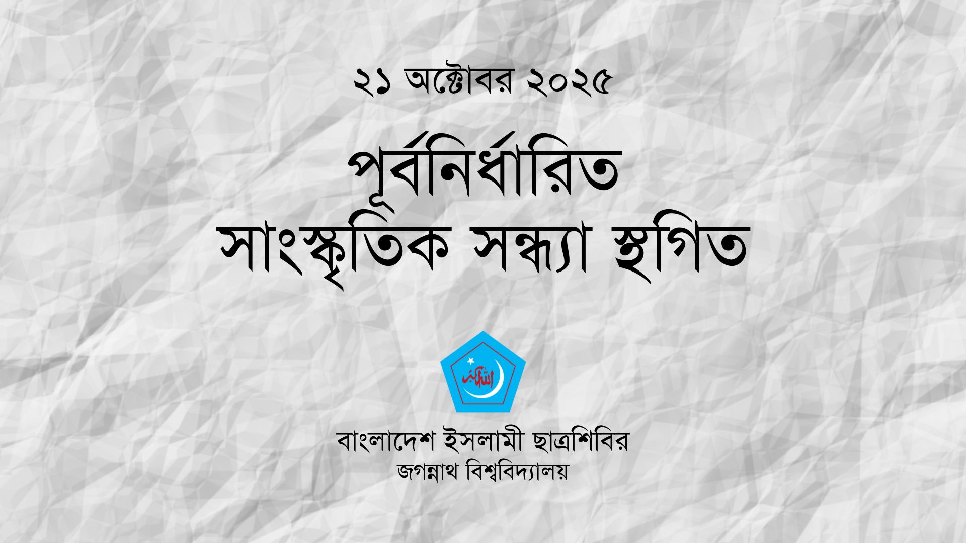 ২১ অক্টোবর পূর্বনির্ধারিত সাংস্কৃতিক সন্ধ্যা অনুষ্ঠান স্থগিত